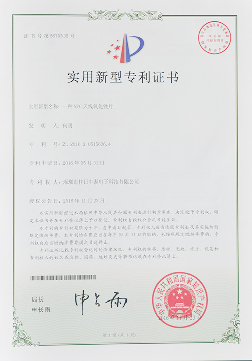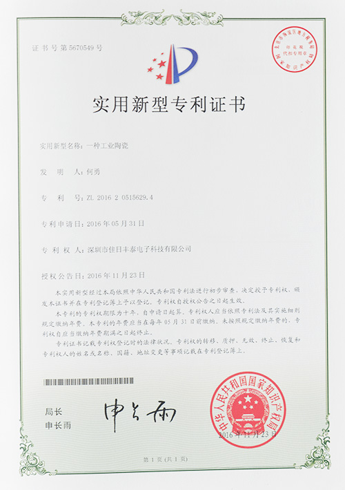 实用新型专利证书