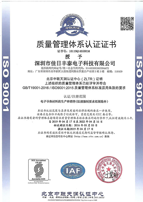 质量体系证书